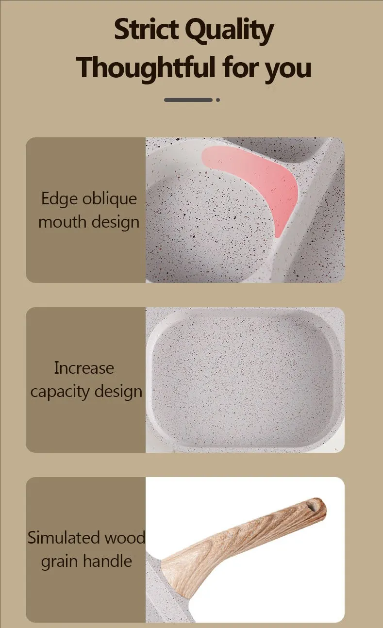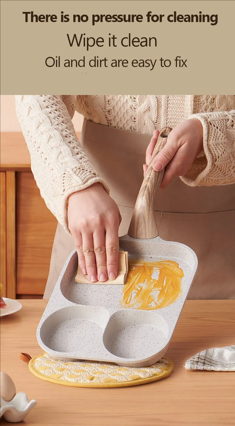 3. The Wheat Rice Stone Breakfast Frying Pan features a three-in-one multi-compartment design, enabling you to prepare multiple dishes ranging from fried eggs to burgers.